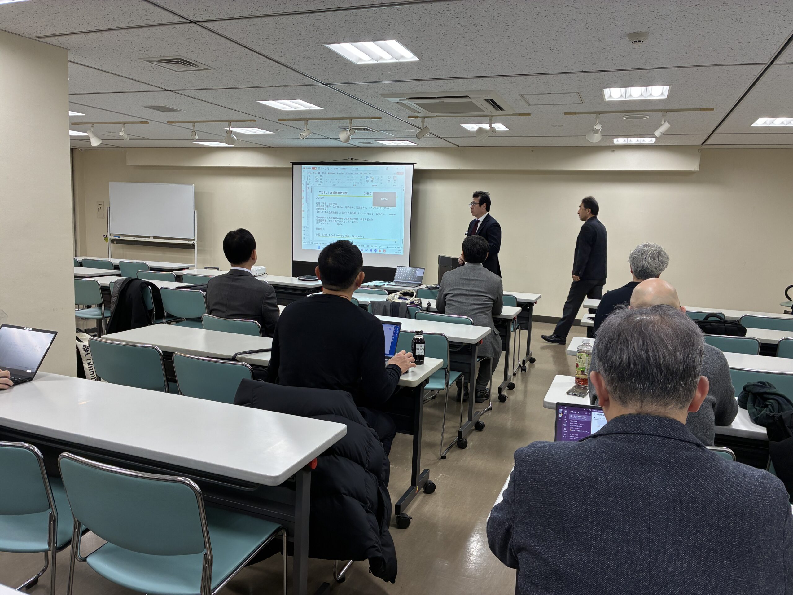 | 2026年1月7日(水)19:00〜20:30 @杉並産業商工会館 ※会場とオンラインのハイブリッド形式で実施します | ①会員自己紹介 ②話題提供:会員より中小企業支援施策の紹介 ③事例研究:失敗事例の共有と改善案の検討 ④その他連絡事項(研究成果発表会、プロジェクトなど) ⑤アンケート |